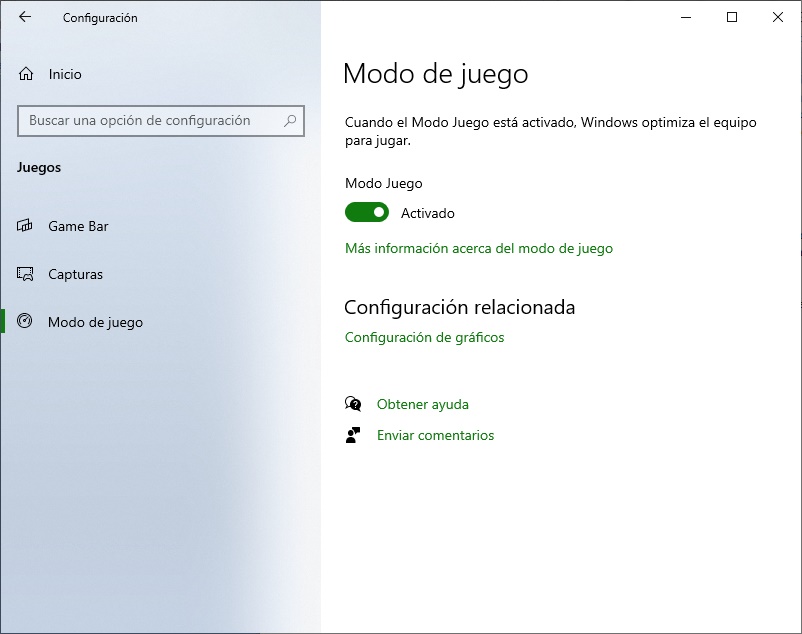 A continuación, iremos al apartado Juegos y veremos como automáticamente entraremos en el apartado Xbox Game Bar.