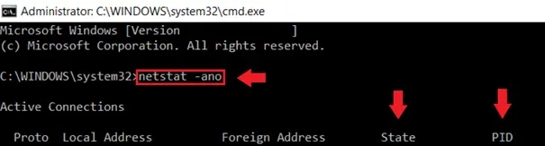 Así se utiliza netstat -ano para el testeo de puertos: